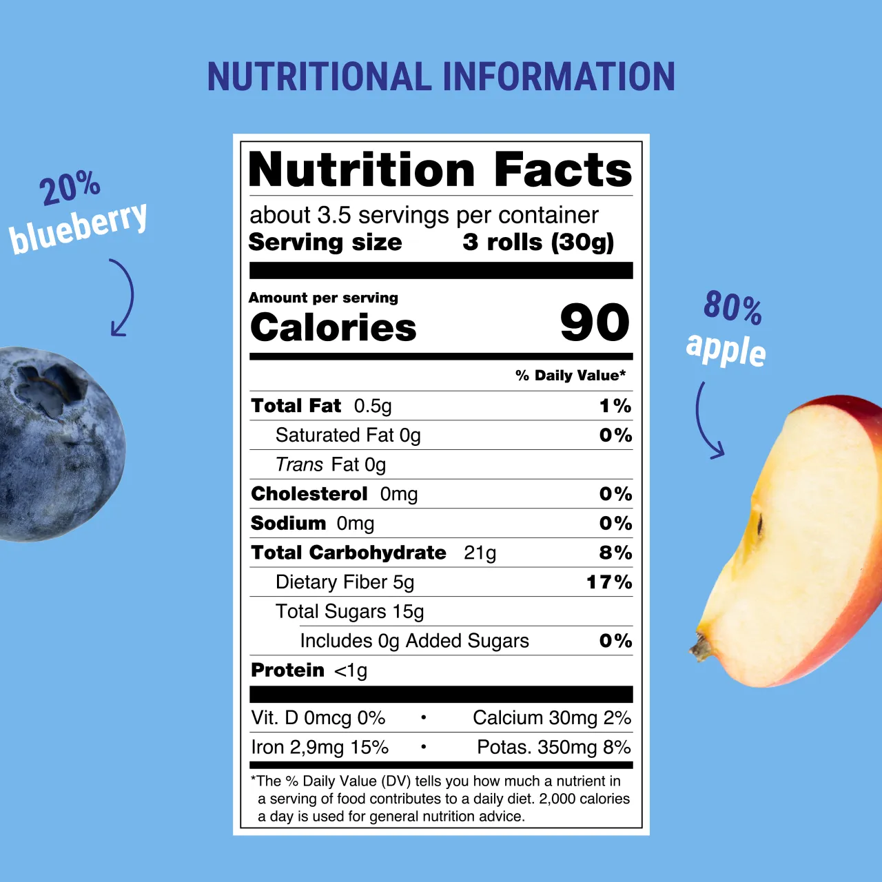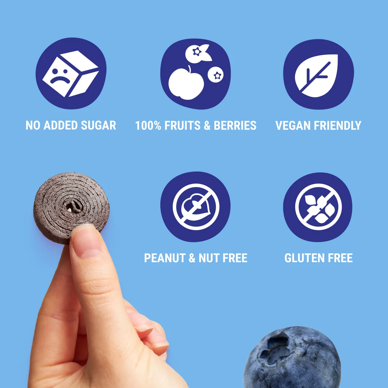 I make rolls from just fruit and berries. No added sugar, no weird stuff. They’re free from gluten, dairy, peanuts, and other top allergens — so they’re a safe, happy snack for almost anyone!