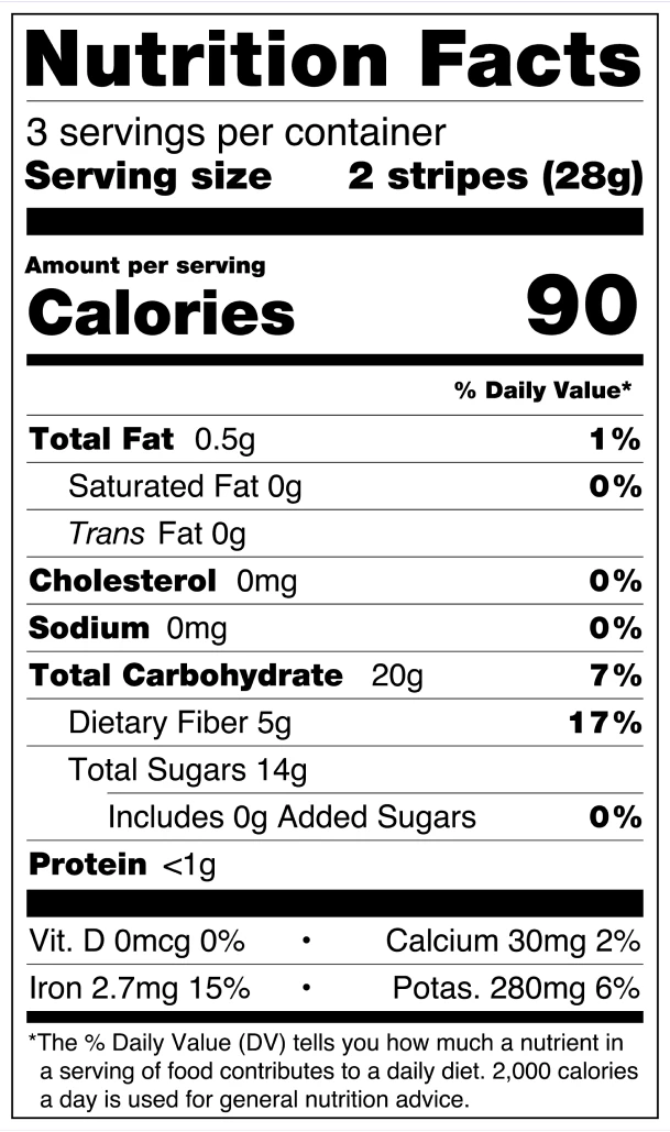 Each stripe is wrapped and ready to go. Slip one into your pocket, lunchbox, or bag. Snack at school, at the office, on a walk, or after the gym.