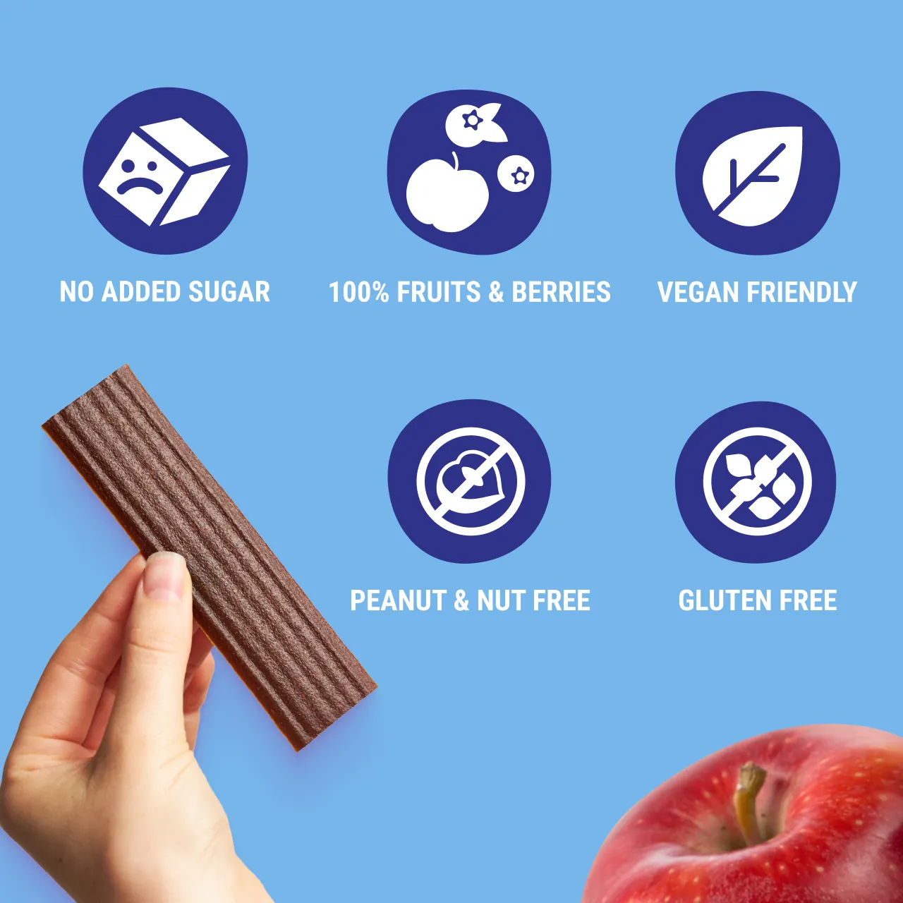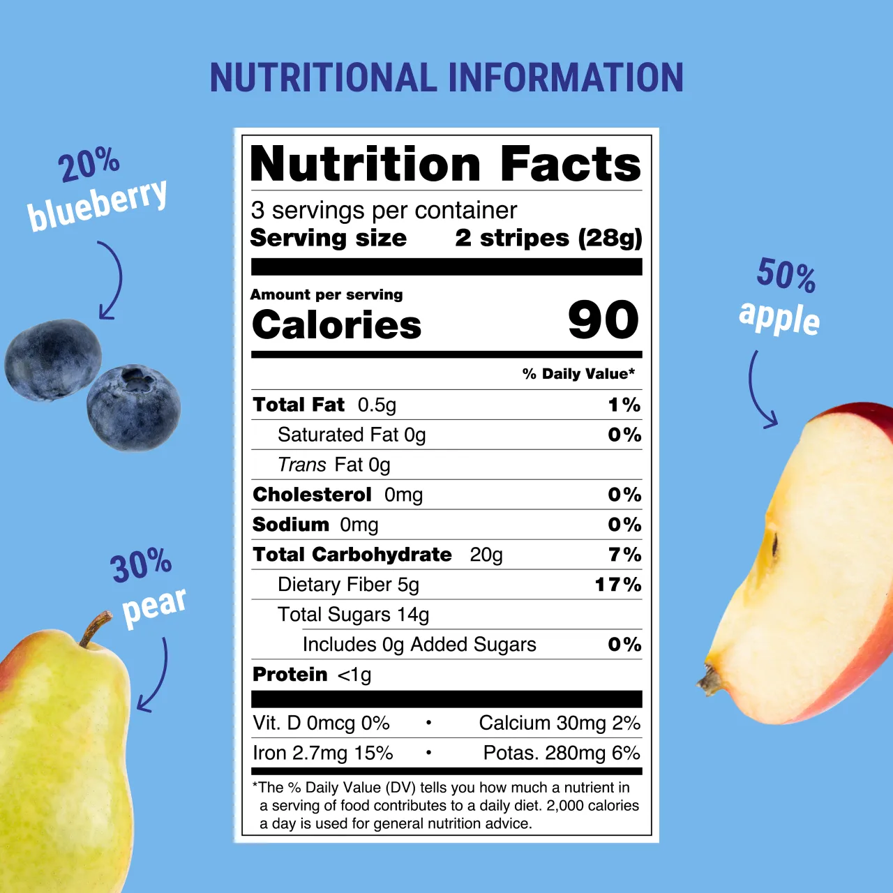 Fruit stripes are made with just two simple ingredients, offering transparency and health benefits. They’re 100% natural, school-safe, vegan-friendly, and perfect for on-the-go snacking.