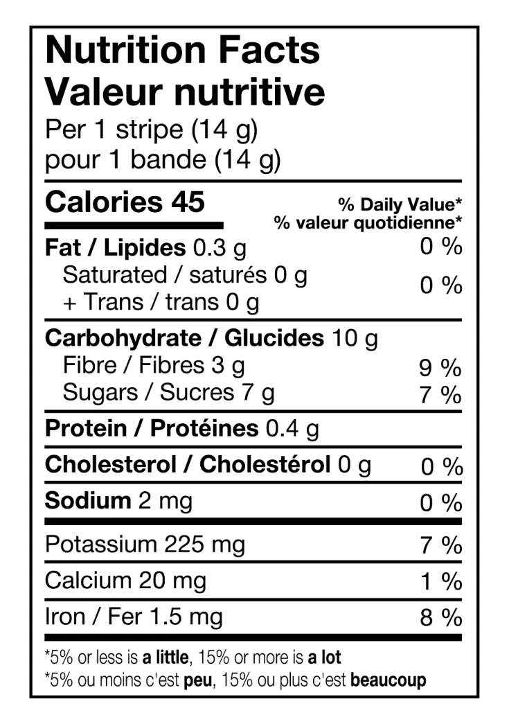 Savourez des bandelettes de fruits faites avec seulement deux ingrédients : des fruits et des baies ! Sans sucre ajouté, sans agents de conservation, sans colorants ni arômes artificiels. Elles ne contiennent aucun des huit allergènes les plus courants, comme les arachides, les produits laitiers ou le gluten, ce qui en fait une collation idéale pour petits et grands.