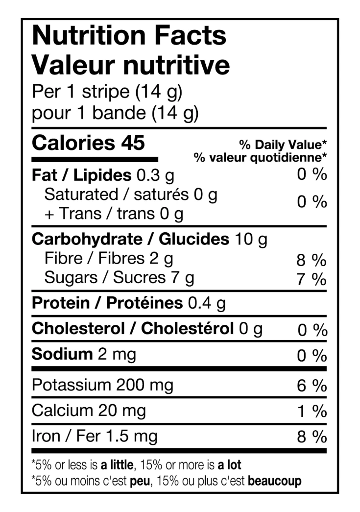 Savourez des bandelettes de fruits faites avec seulement deux ingrédients : des fruits et des baies ! Sans sucre ajouté, sans agents de conservation, sans colorants ni arômes artificiels. Elles ne contiennent aucun des huit allergènes les plus courants, comme les arachides, les produits laitiers ou le gluten, ce qui en fait une collation idéale pour petits et grands.