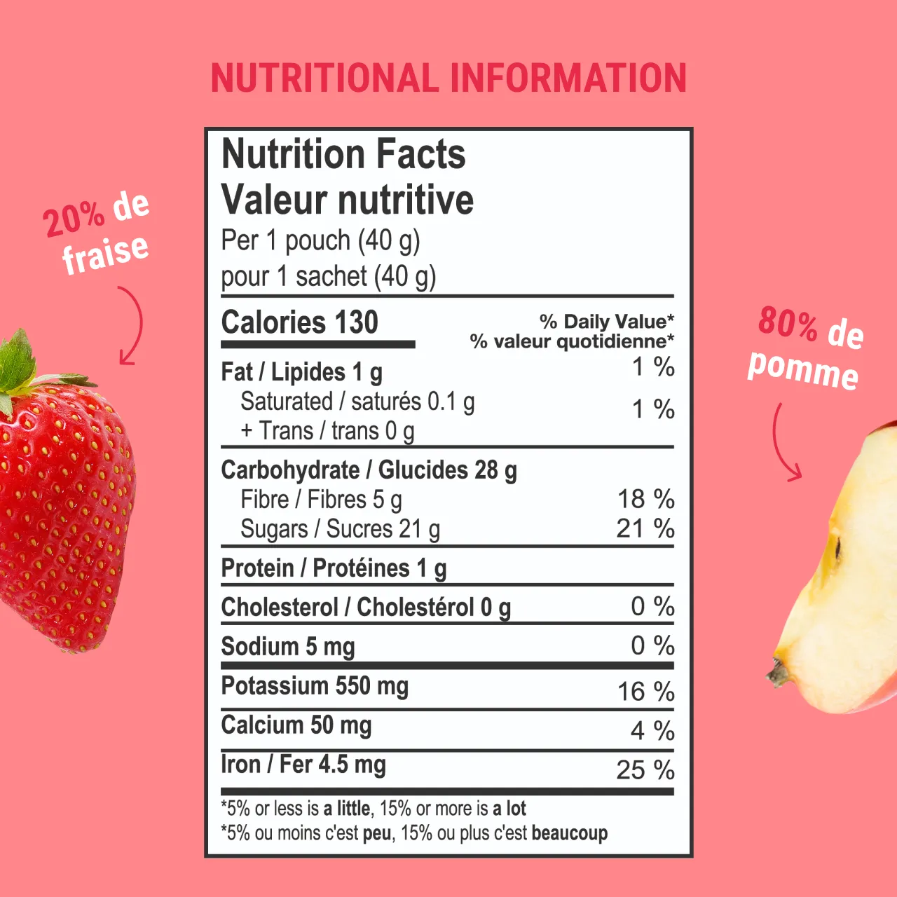Ajoutez une touche de plaisir à vos pauses avec mes collations aux fruits ! Fait à partir de vrais fruits et baies, sans sucre ajouté, sans agents de conservation, sans colorants ni arômes artificiels. En plus, elles ne contiennent aucun des huit allergènes les plus courants, comme les arachides, les produits laitiers ou le gluten. Bref, un choix parfait pour petits et grands !