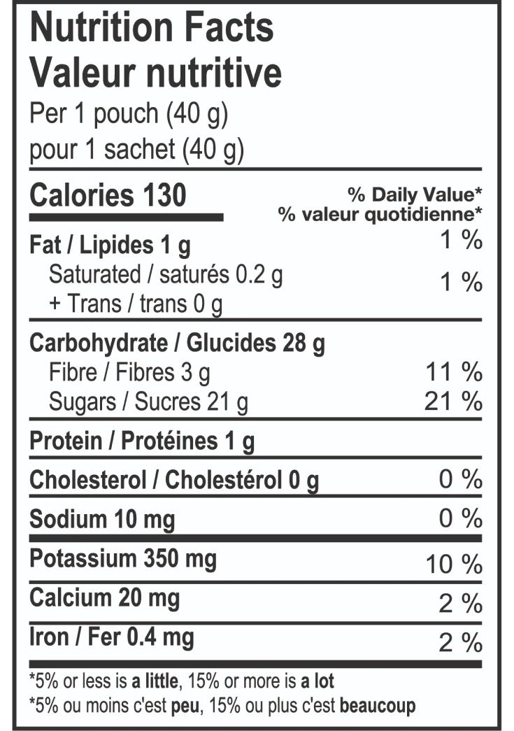 My snacks are made from 100% fruits and berries with no added sugar. They’re free from top allergens: peanuts, tree nuts, milk, eggs, soy, wheat, fish, shellfish, and sesame. No gluten or artificial ingredients. Pure fruit and nothing else!