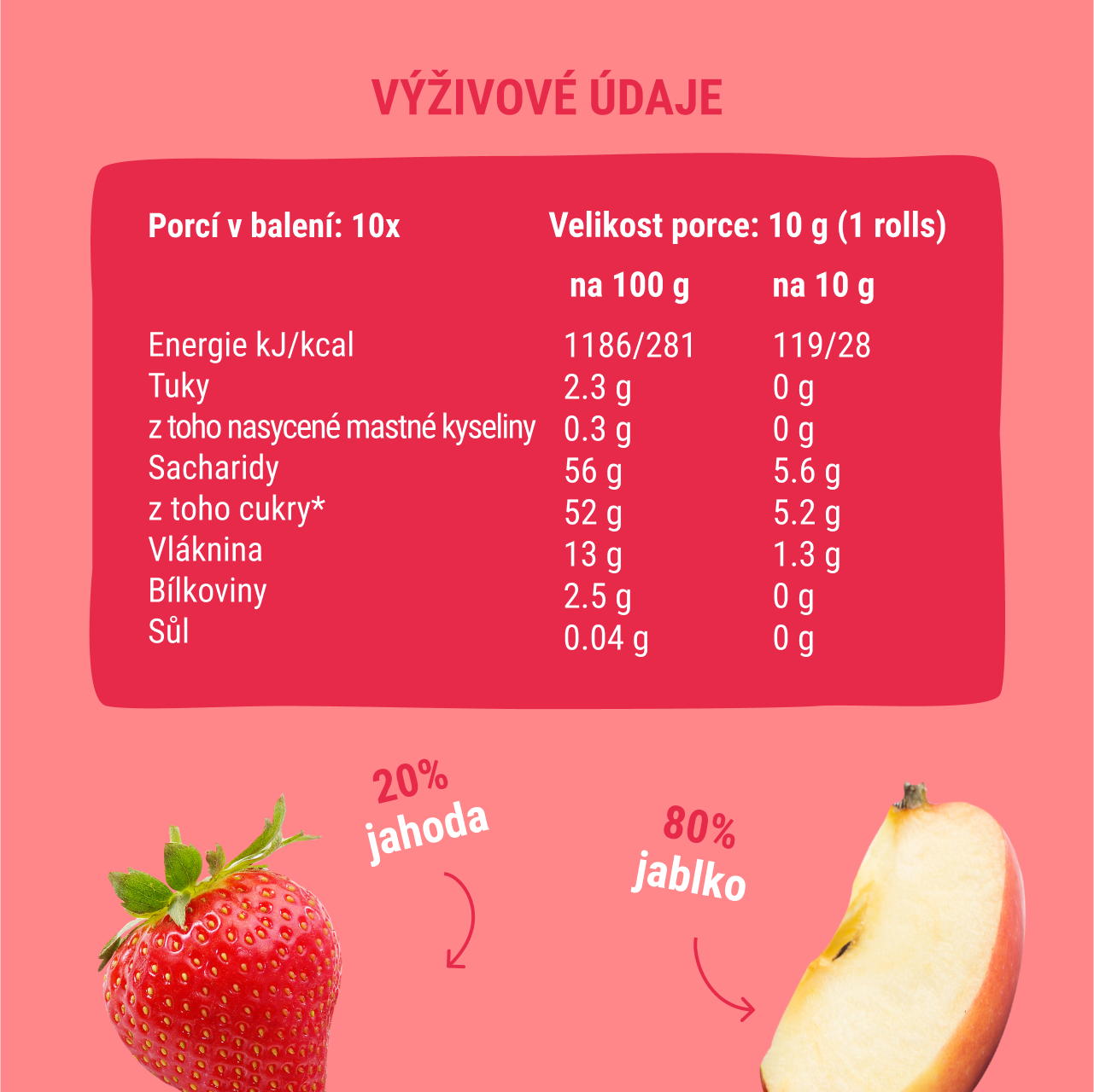 Ovocné rolky jsou přírodní a zdravou volbou, vyrobenou ze skutečného ovoce, bez přidaného cukru, konzervantů, umělých barviv a aromat. Chutnají dětem i dospělým, představují zdravou alternativu svačiny, ať už na cestách, ve škole nebo v práci.
