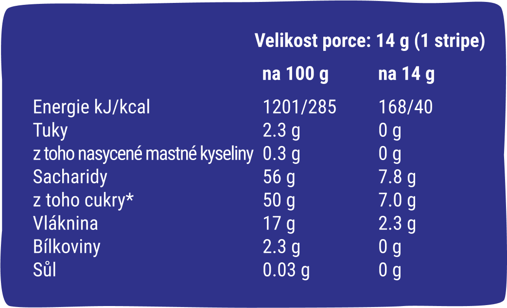 Složení ovocných plátků je jednoduché, zdravé a zcela transparentní. 100% přírodní, veganské a perfektně se hodí do školy i na venkovní aktivity.
