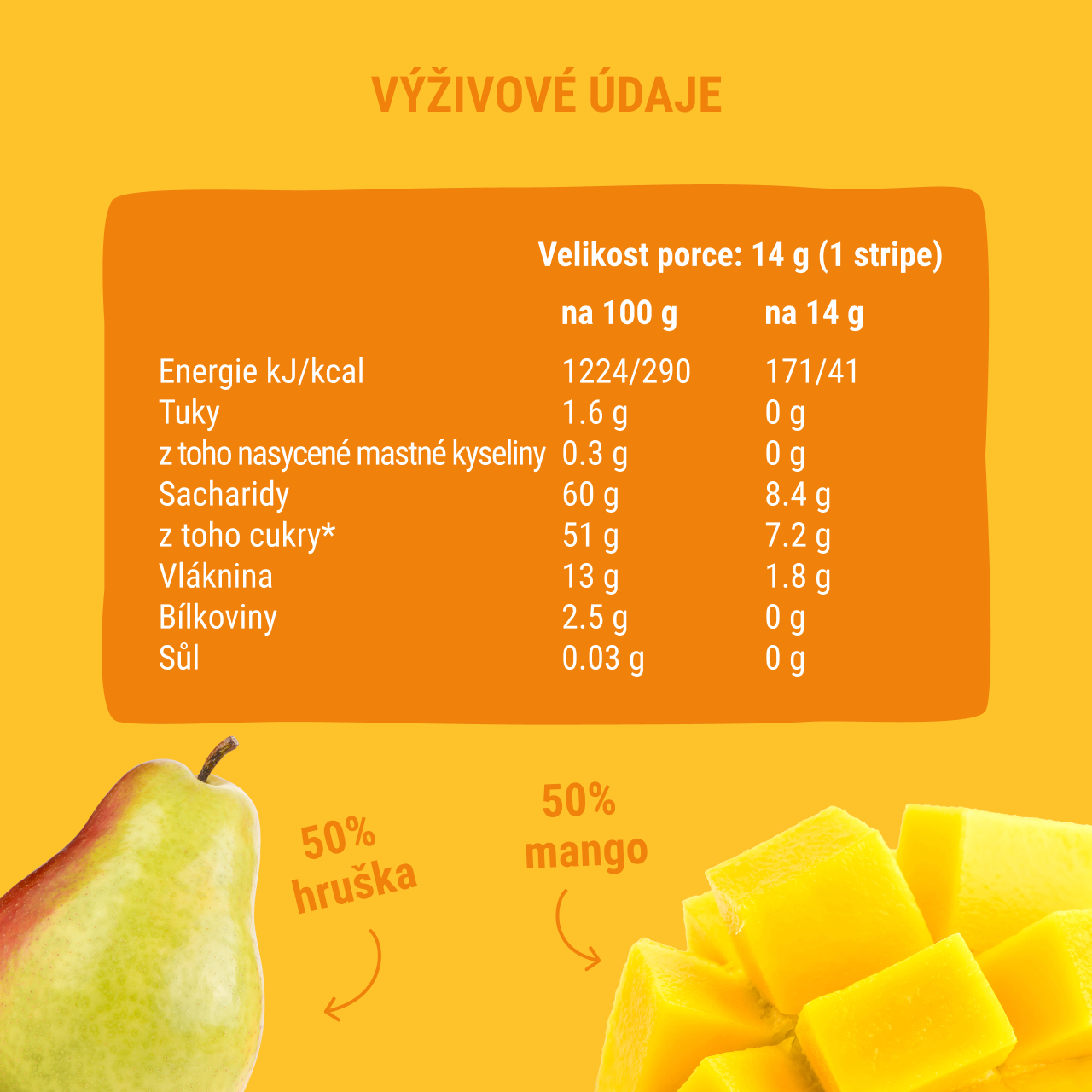 Mango 50%, hruška 50%.