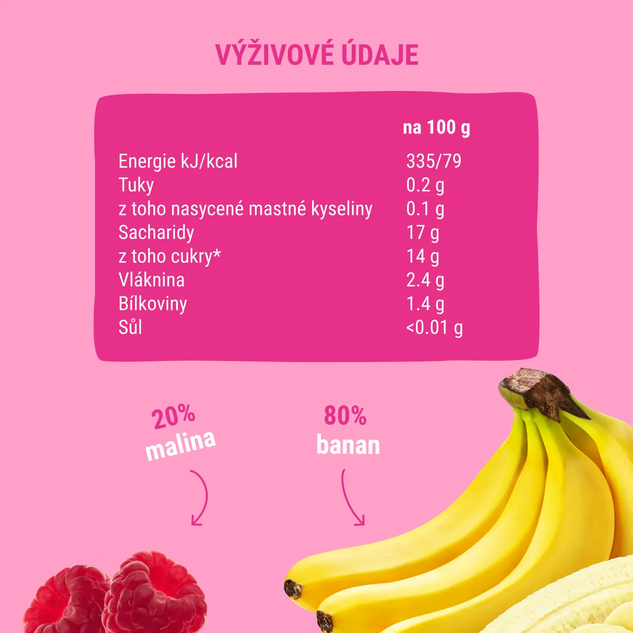 Smoothie vyrobené 100% z ovoce, bez přidaného cukru a umělých přísad. Praktické balení na cesty, vždy připravené pro rychlé občerstvení.