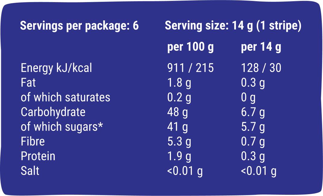 Each stripe is wrapped and ready to go. Slip one into your pocket, lunchbox, or bag. Snack at school, at the office, on a walk, or after the gym.