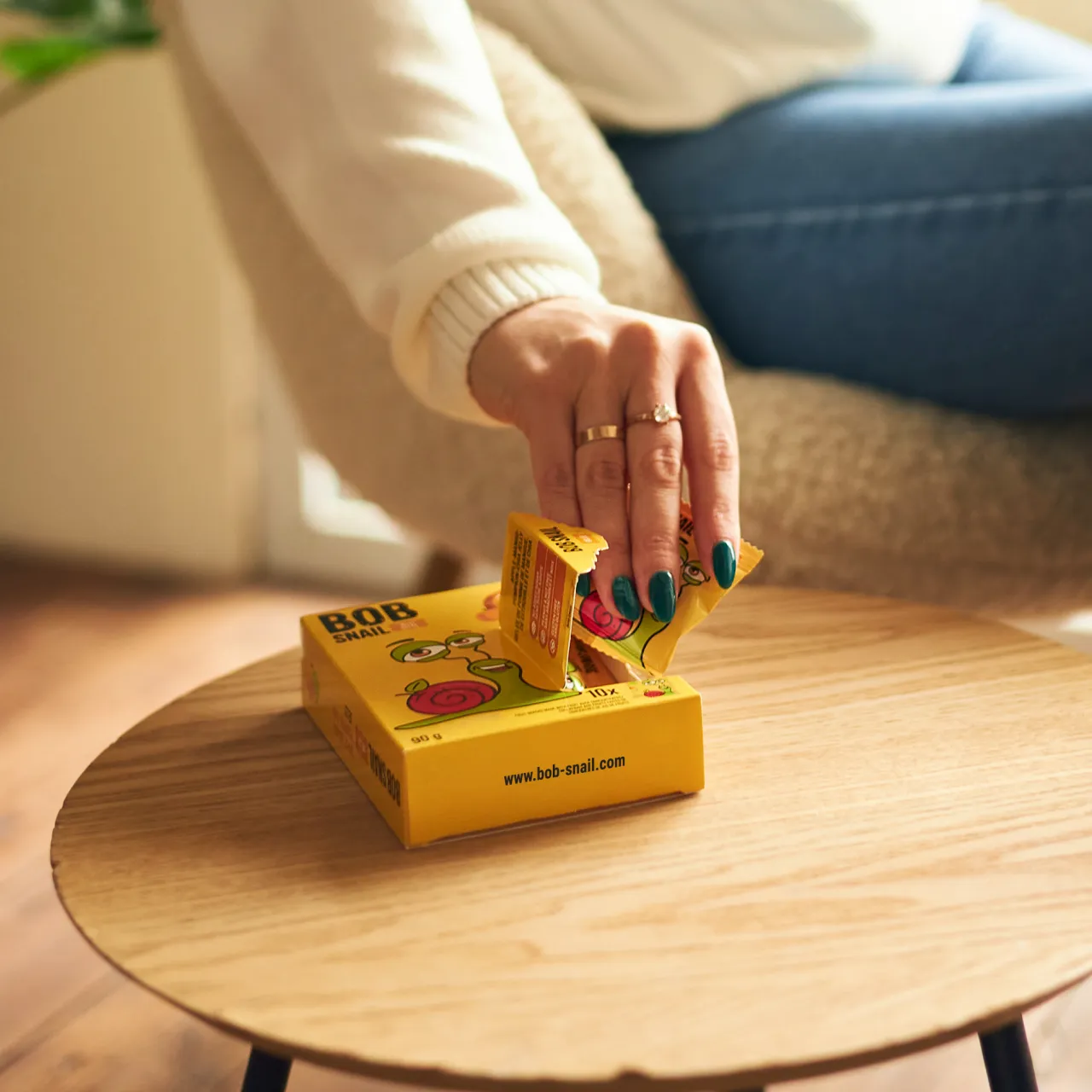 Bob Snail snacks are made from 100% fruits and berries with no added sugar. They’re free from cereals containing gluten, crustaceans, eggs, fish, peanuts, soy, milk, tree nuts, celery, mustard, sesame, sulphur dioxide/sulphites, lupin, and molluscs. Pure fruit, nothing else!
