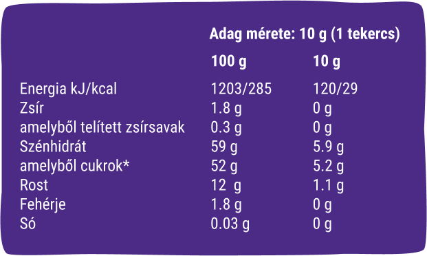 – Két gyümölcs tekercset (nincs benne cukor, csak gyümölcs)