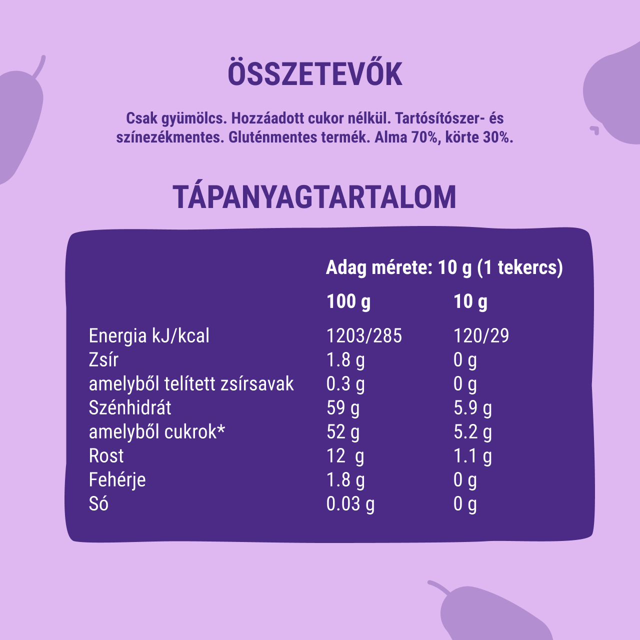 – Két gyümölcs tekercset (nincs benne cukor, csak gyümölcs)
