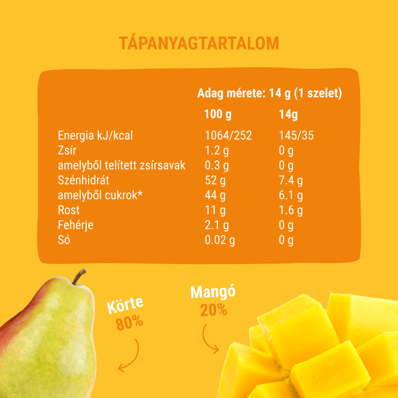Mindegyik gyümölcsszelet külön van csomagolva – dobd be a zsebedbe, uzsonnás dobozba vagy a hátizsákodba. Nassolj iskolában, munkahelyen, kirándulás közben vagy edzés után.