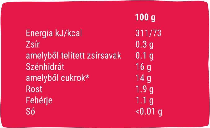 Finomságaim 100%-ban gyümölcsből készülnek, nincs bennük hozzáadott cukor. Mentesek a fő allergénektől: földimogyoró, diófélék, tej, tojás, szója, búza, hal, kagyló, szezámmag. Glutén- és mesterséges anyagoktól mentesek.