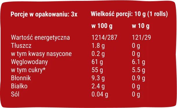 Moje rollsy powstają wyłącznie z owoców. Bez dodatku cukru i dziwnych składników. Nie zawierają glutenu, nabiału, orzechów ziemnych i innych powszechnych alergenów. To bezpieczna i zabawna przekąska dla niemal każdego!