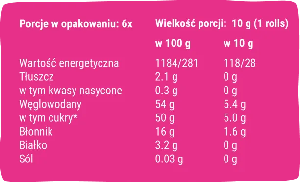 Moje rollsy powstają wyłącznie z owoców. Bez dodatku cukru i dziwnych składników. Nie zawierają glutenu, nabiału, orzechów ziemnych i innych powszechnych alergenów. To bezpieczna i zabawna przekąska dla niemal każdego!