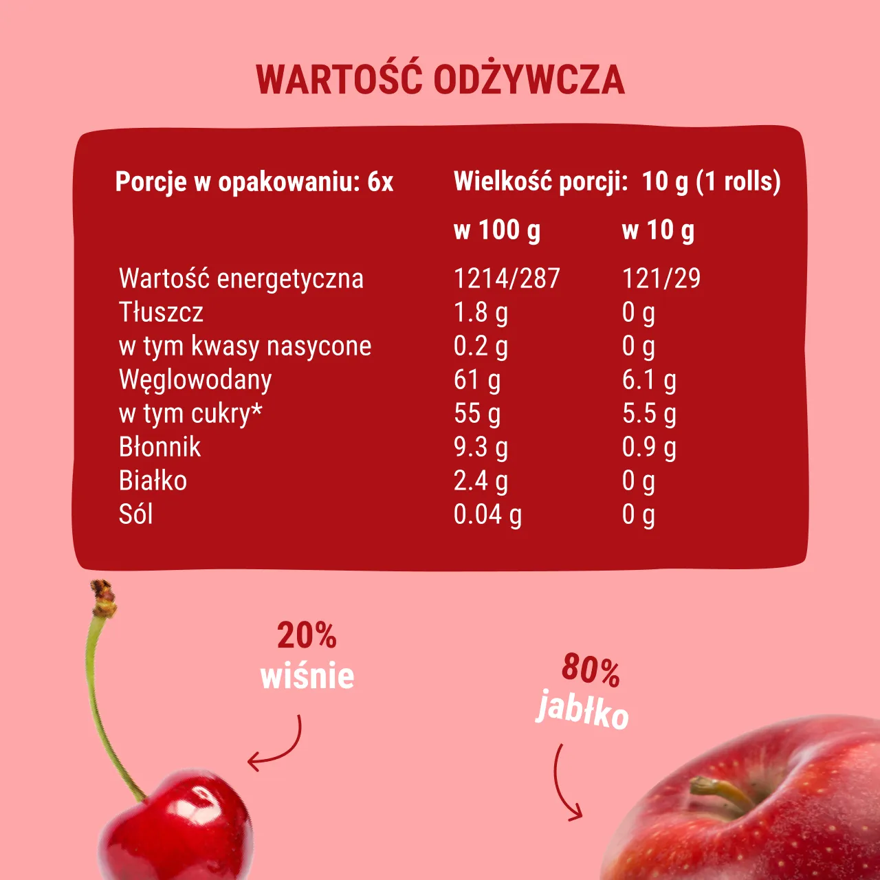 Owocowe rollsy to naturalna i wartościowa przekąska, wykonana wyłącznie z owoców, bez dodatku cukru, konserwantów, sztucznych barwników i aromatów. Idealne zarówno dla dzieci, jak i dorosłych, są zdrową alternatywą dla tradycyjnych słodyczy.