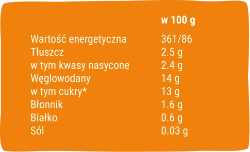 Moje przekaski są wykonane w 100% z owoców bez dodatku cukru. Nie zawierają powszechnych alergenów: orzechów, mleka, jaj, soi, pszenicy, ryb, skorupiaków ani sezamu. Bez glutenu i sztucznych składników. Tylko czyste owoce i nic więcej!