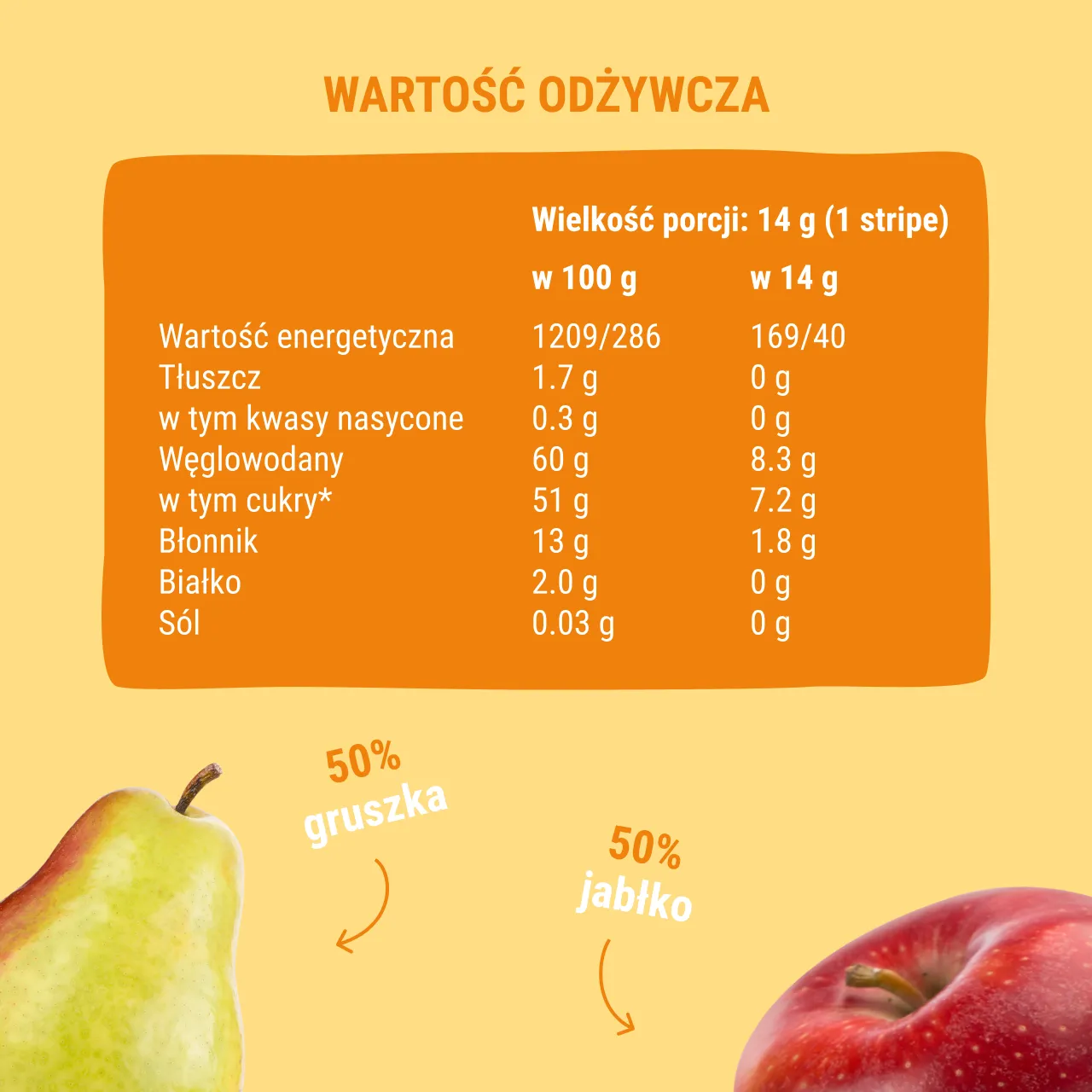 Jabłko 50%, Gruszka 50%.
